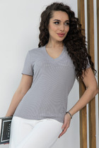 Блузка женская прилегающего силуэта, выполнена из экокожи. Перед с подрезом ниже линии груди, с фигурным вырезом горловины, спинка со швами и застежкой на тесьму-молнию. Рукав одношовный из тонкой, воздушной органзы, по низу рукава манжет.