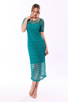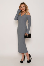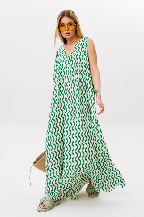 Платье женское А-силуэта длинное. Вырез горловины по переду и спинке V-образный.