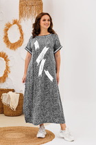 Платье летнее из хлопкового шитья. Полуприлегающего силуэта, с втачным рукавом, отрезное по талии. Полочка отрезная по талии, с нагрудной вытачкой. Нижняя часть платья присобрана по линии талии. По низу отрезной волан. Спинка с фигурным вырезом, застежкой по горловине спинки на пуговицы, и от боковых швов с пояском на завязках. По талии отрезное, нижняя часть вверху на резинке, по низу отрезной волан со сборкой. Рукав внизу на узкой манжете, присобран по окату и по шву притачивания манжеты.