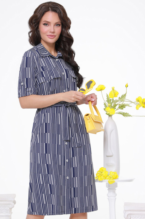 Универсальное платье-рубашка на любой случай. Полноценная застежка делают платье удобным в надевании и безопасным для макияжа и прически. Сорочечный фасон воротника придает платью элегантность, а пояс подчеркивает талию. Прекрасный выбор на лето!