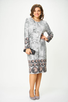 Платье женское полуприлегающего кроя, выполнено из шифоновой ткани. Изделие отрезное по линии талии, рукав втачной короткий, низ рукава обработан эластичной тесьмой. Горловина по лифу фигурная, По спинке платья имеется вставка из сетки и вырез "капелька". Платье на подкладке.