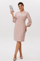 Платье с застежкой на потайную молнию в среднем шве спинки, без воротника, с V-образным вырезом горловины. По переду с нагрудными вытачками. Платье отрезное по линии талии. Шов по талии с воланом. Спинка со средним швом, талиевыми вытачками по верхней части спинки. По горловине переда- шнур- завязка. Рукав втачной, длинный. Окат рукава со сборкой. Низ рукава присборен на резинку.