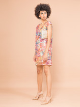 Комфортное летнее платье прямого кроя. Горловина оформлена стойкой. V - образный вырез переходящий в планку с застежкой на петли и пуговицы. Перед дополнен накладными карманами. Низ ровный, по бокам разрезы.