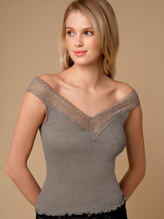 Женская майка с рубчатой текстурой, выполненная из мягкого хлопка и легкого модала, обладает приятными тактильными свойствами. Дизайн с текстурой в рубчик придает изделию актуальный вид и визуально подчеркивает контуры фигуры. Кружевные рукава добавляют утонченности, делая майку универсальным элементом, который сочетается с различными нарядами.
