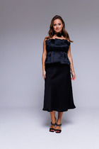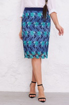 Модель прямого силуэта. Спереди карманы в подрезных бочках и застёжка на молнию и пуговицы. Сзади наклонные кокетки и фигурные накладные карманы. В средних швах переда и спинки обработаы шлицы. Спереди шлица застёгивается на пуговицы. Пояс притачной, со шлёвками. Юбка декорирована отделочными строчками. Ремень в комплект не входит.
