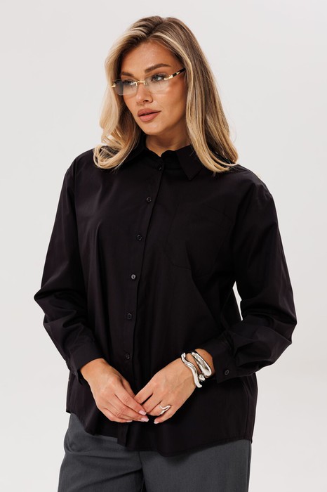 Свободный крой напоминает рубашки, взятые напрокат из мужского гардероба, — слегка oversize, с удлиненными линиями, но при этом безупречно лежащий по фигуре. Длинные рукава с аккуратными манжетами можно закатать для небрежной легкости или оставить распущенными для строгой собранности. А тот самый карман на груди — не просто деталь, а молчаливый намек на рабочую эстетику, превращающую даже самый повседневный look в историю со смыслом.