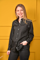 Длинные втачные рукава с манжетами придают блузе универсальность – она подходит как для сочетания с элегантной юбкой, так и для стильных брюк. Эта блуза – идеальный выбор для современных женщин, ценящих элегантность и практичность в каждой детали своего образа.