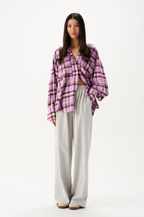 Рубашка прямого свободного кроя, выполнена из хлопкового полотна с капюшоном, выполненым из трикотажного полотна серого цвета. Капюшон двойной. Застёжка центральная на пуговицы. По переду на уровни линии груди карманы с клапаном. Рукав спущенный, свободный, с манжетой на пуговице. Длина рукава от края горловины 77см. Длина спинки от края горловины 74 см.