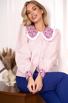 Блуза великолепно сочетается с брюками и юбками из денима, как брюки арт. 6062, представленные на фото.