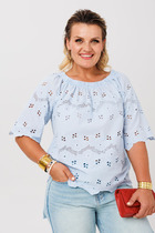 Жакет выполнен из хлопкового денима. Рукав рубашечного кроя. По передней планке застёжка на пуговицы, по бокам накладные функциональные карманы. По спинке по линии притачивания кокетки защипы.