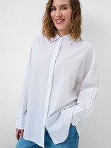 Рубашка прямого силуэта с притачной планкой с застёжкой на петли и пуговицы. Рукав втачной одношовный со спущенной линией плеча с патой. Воротник рубашечный стояче-отложной. Перед состоит из трёх частей : центральная часть ,верхняя часть и нижняя часть. Спинка состоит из двух частей . Линия низа фигурная с широкой окантовкой.