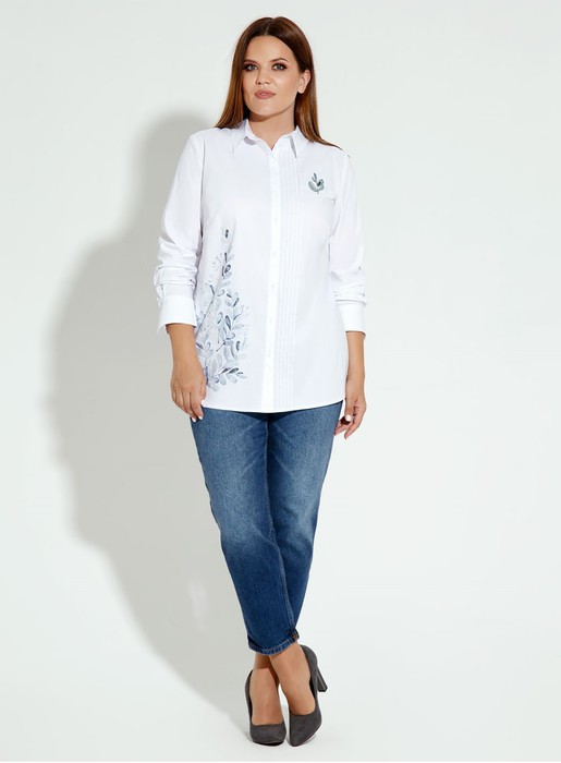 Эффектная блузка из хлопковой ткани, свободного силуэта, акцент сделан на печать на воротнике и манжетах, с центральной застежкой на петли пуговицы, линия плеча спущенная с притачной манжетой. Спинка лаконичная, со Практичная и элегантная блузка в классическом стиле выполнена из качественной хлопковой ткани с эластаном. Рукав длинный с отложным манжетом с заостренными уголками. Манжет застёгивается на одну петлю-пуговицу. Воротник рубашечный,отложной, на стойке. Застёжка спереди на отрезную планку и петли-пуговицы. По переду блузка декортрована вертикальными защипами и нежным принтом. По спинке также выполнены короткие защипы от среза горловины. Нагрудные вытачки обеспечивают идеальную посадку на фигуру. Прекрасный вариант блузки на каждый день для стильной и энергичной девушки.