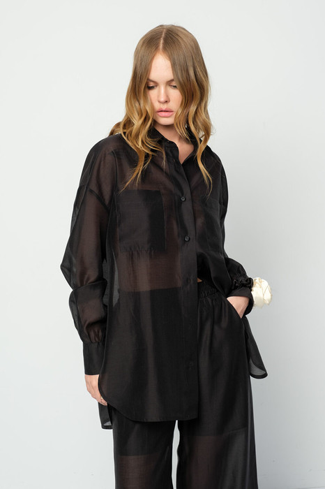 Полупрозрачная оверсайз рубашка из вискозы.