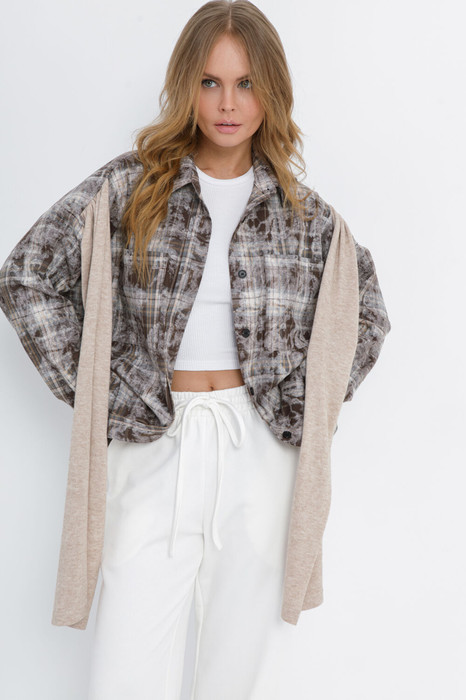 Свободная рубашка в клетку с эффектом потертости.