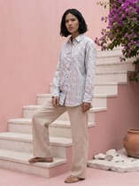 Рубашка женская из гладкокрашеного тканого полотна, свободного покроя, с длинными втачными рукавами, стояче-отложным воротником, фигурной линией низа и центральной бортовой застежкой на обметанные петли и пуговицы. Рукава – с притачными манжетами застегиваются на две обметанные петли и пуговицы.При выборе изделия в белом цвете идеальным решением будет выбор белья нейтральных