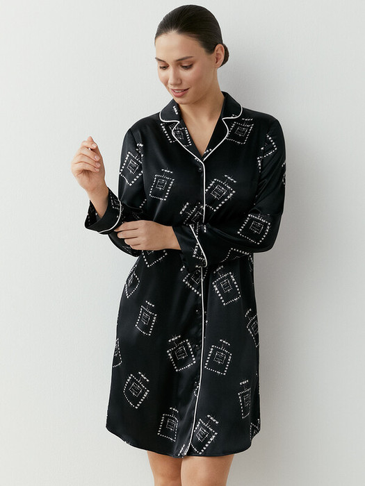 Изящная и комфортная рубашка с элегантным и минималистичным принтом отлично подойдет для дома и сна. Стильное решение на каждый день.
