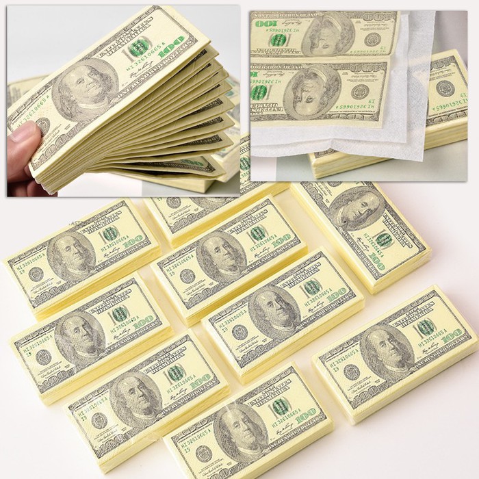 Совместные покупки Тюмень Косметика и парфюмерия Прочий макияж — Салфетки сервировочные "ПАЧКА ДОЛЛАРОВ" 3 слоя, 10 штук, 33х33 см.