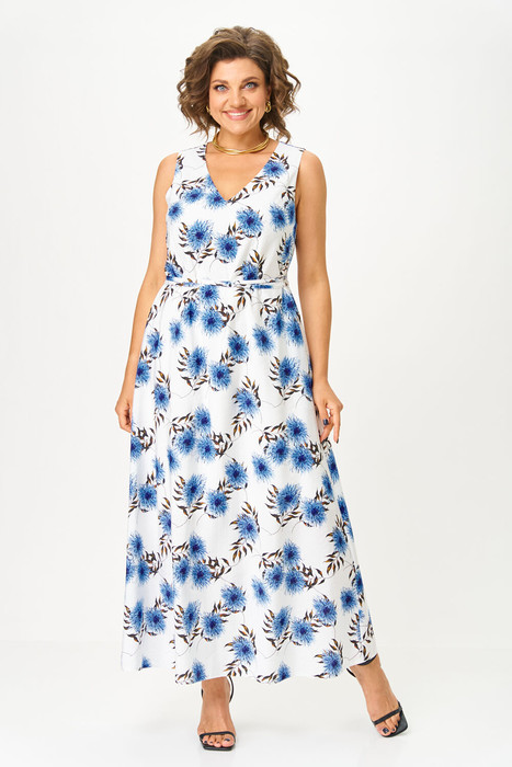Сарафан полуприлегающего силуэта расширенный к низу, горловина V образная, по талии в боковые швы вставленные шнуры. Платье на подкладке.