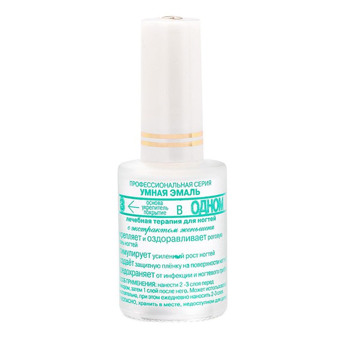 Лучшее лечебное средство для ваших ногтей – 3 в 1 умная эмаль с вытяжкой женьшеня. Укрепитель, основа и покрытие – вот три кита, на которых держится данный состав. Чтобы ногти оставались здоровыми и крепкими, не ломались и быстрее росли, для препарата изготовлена особая формула с идеальным балансом элементов.