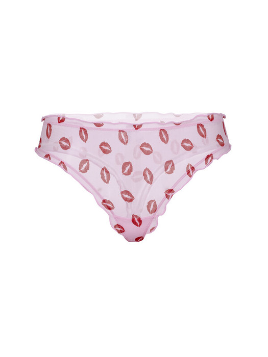 Трусики Brazilian со средней посадкой  выполнены из мягкой принтованой сетки. Нежная резинка по талии и краю ножек с рюшами. Набор в подарочной коробочке с сердечком состоит из двух трусиков в разных цветах : нежно-розового с принтом "поцелуй" и красного  с надписью "love". Ластовица из хлопка.