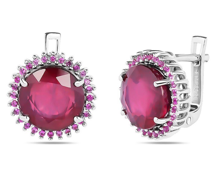 Серьги, арт.658580 Серебро Серебро 925, 6,02 гр., 2 рубин корунд круг 10мм/10.12 ct , нанорубин