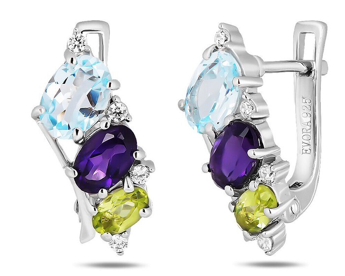 Серьги, арт.657817 Серебро Серебро 925, 3,41 гр., аметист , перидот , топаз