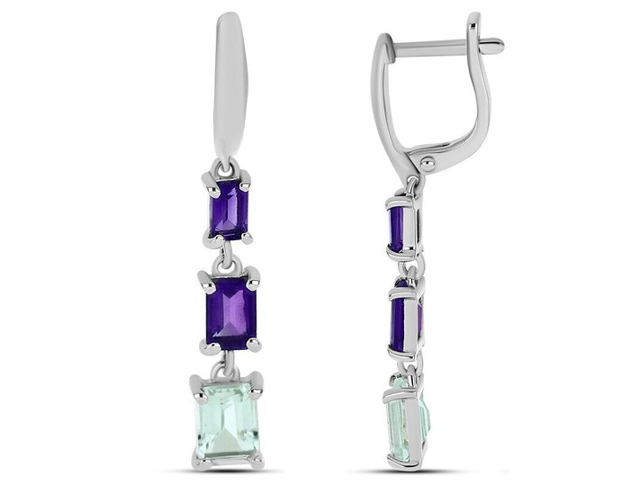 Серьги, арт.657877 Серебро Серебро 925, 4,42 гр., аметист , зеленый аметист