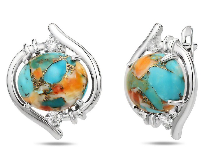 Серьги, арт.657934 Серебро Серебро 925, 4,62 гр., бирюза устричная голубая