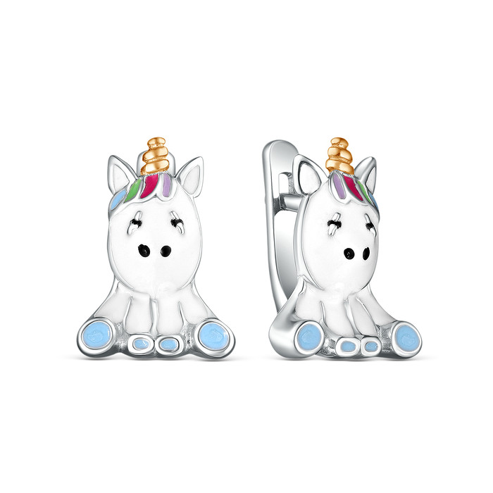 Совместные покупки Тюмень Ювелирные украшения и бижутерия Серьги — Серьги детские из серебра с эмалью родированные - Единорожки 925 пробы 2313031