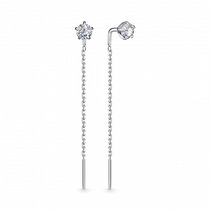 Серьги-продёвки из серебра с фианитами родированные
