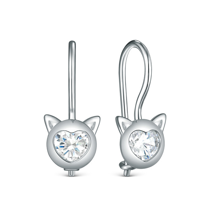 Совместные покупки Тюмень Ювелирные украшения и бижутерия Серьги — Серьги детские из серебра с фианитами родированные - Кошки S2180581010