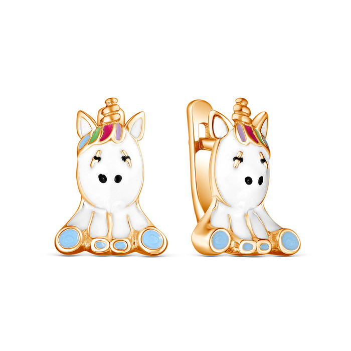Совместные покупки Тюмень Ювелирные украшения и бижутерия Серьги — Серьги детские из золочёного серебра с эмалью и фианитами - Единорожки 2323031
