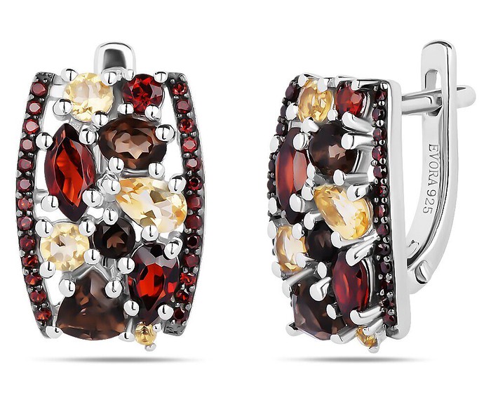 Серьги, арт.658737 Серебро Серебро 925, 5,4 гр., гранат , раухтопаз , цитрин