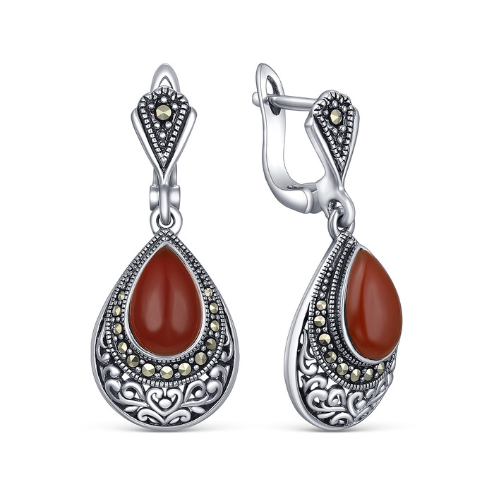 Совместные покупки Тюмень Ювелирные украшения и бижутерия Серьги — Серьги из чернёного серебра с агатом и марказитами HE1703-RD-LK