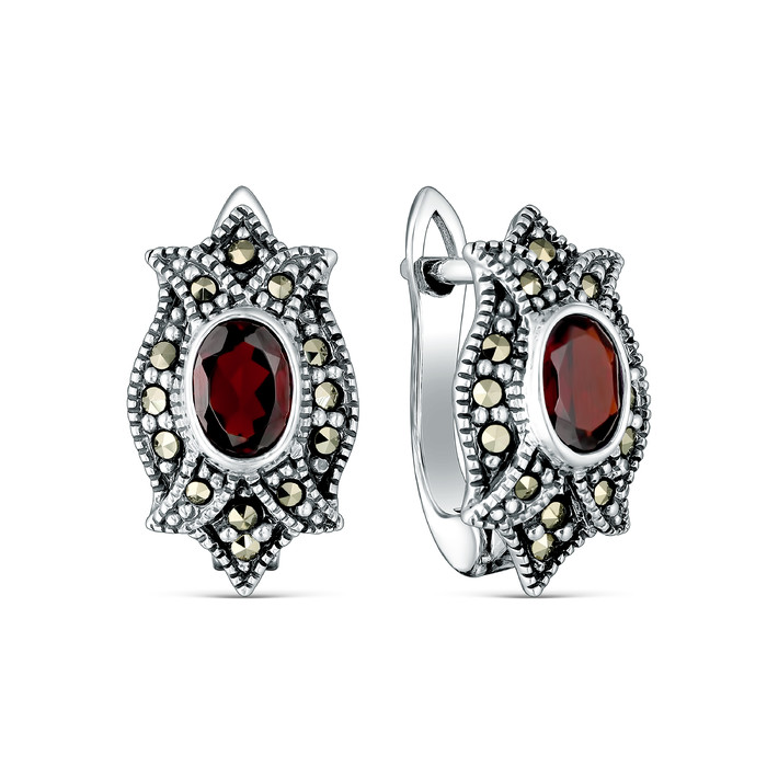 Совместные покупки Тюмень Ювелирные украшения и бижутерия Серьги — Серьги из чернёного серебра с натуральным гранатом и марказитами 925 пробы HE030