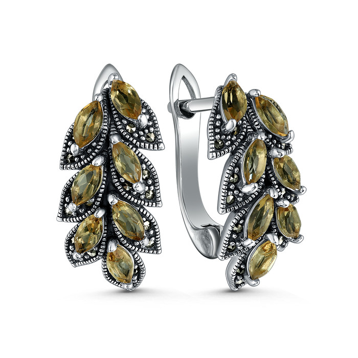 Серьги из чернёного серебра с султанитами и марказитами 925 пробы HE1753-ZN-LK