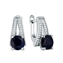 Серьги из чернёного серебра с султанитом и марказитами 925 пробы HE0725-ZN-LK
