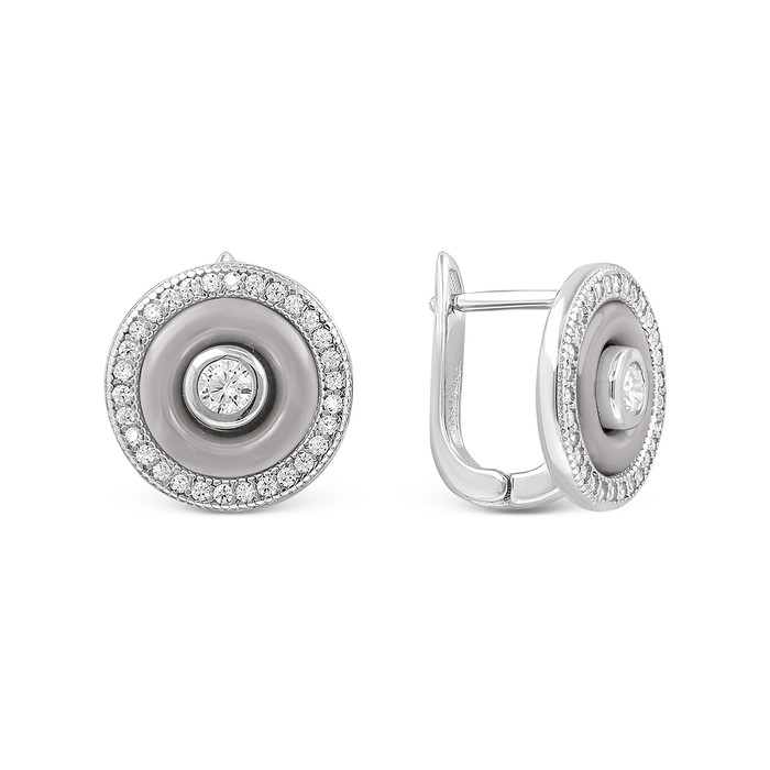 Серьги из родированного серебра с куб.цирконием и керамикой 925 пробы CTX-E077-3