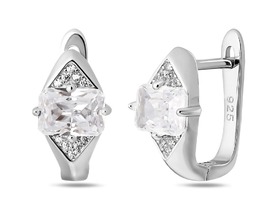 Серьги с фианитом родированные серебро 925*