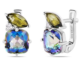 Серьги, мистик кварц синий , оливковая шпинель, Диор