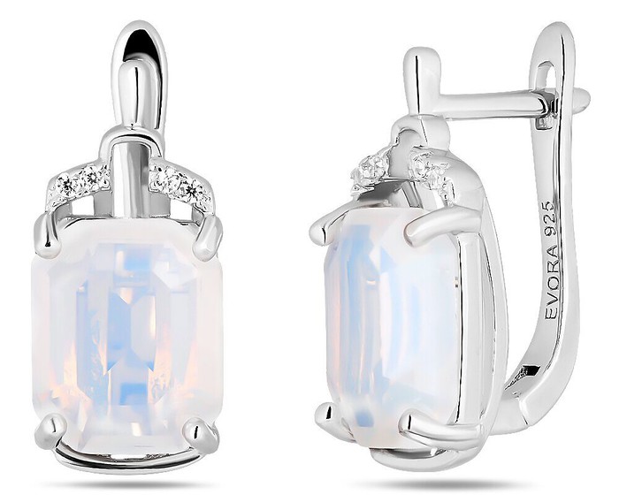 Серьги, арт.651407 Серебро Серебро 925, 3,72 гр., лунный камень