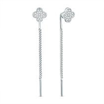 Серьги-продёвки клевер четверолистник из серебра с фианитами родированные 925 пр