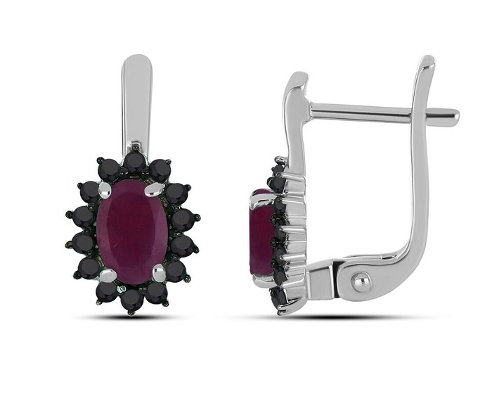 Серьги, арт.645528 Серебро Серебро 925, 2,8 гр., рубин корунд , шпинель