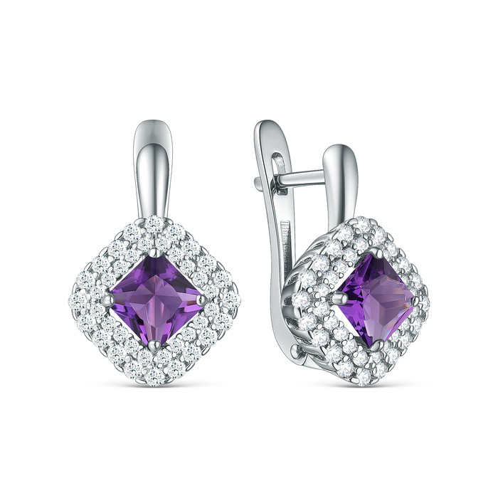 Совместные покупки Тюмень Ювелирные украшения и бижутерия Серьги — Серьги из серебра с аметистом и фианитами родированные С50083р401