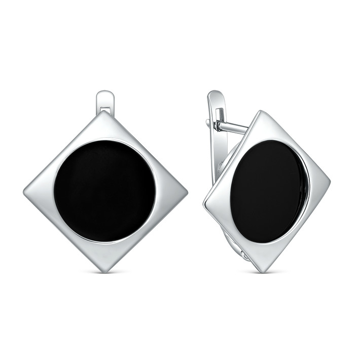Совместные покупки Тюмень Ювелирные украшения и бижутерия Серьги — Серьги из серебра с чёрным агатом родированные 925 пробы С-4039-Р-Ча