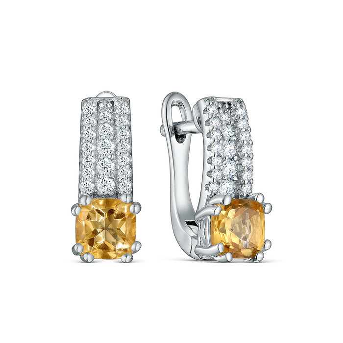 Совместные покупки Тюмень Ювелирные украшения и бижутерия Серьги — Серьги из серебра с цитрином и кубическим цирконием родированные 925 пробы GTE-1