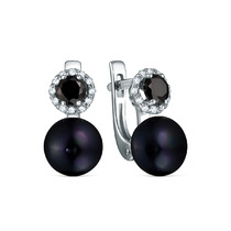 Серьги из серебра с культивированным жемчугом и фианитами родированные 925 пробы