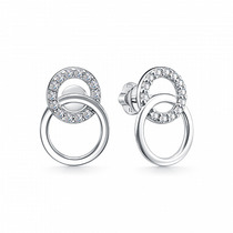 Серьги-конго из серебра с алмазной огранкой родированные - диаметр 1,5 см 925 пр