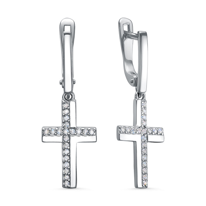 Совместные покупки Тюмень Ювелирные украшения и бижутерия Серьги — Серьги из серебра с фианитами родированные - Кресты 925 пробы С-4398-Р
