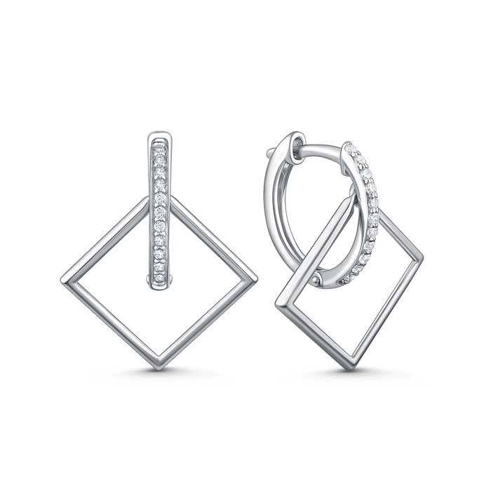 Совместные покупки Тюмень Ювелирные украшения и бижутерия Серьги — Серьги из серебра с фианитами родированные - Ромбы 925 пробы 11-1339р
